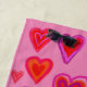 Toalla de playa de corazones rojos, fondo rosa, elegante y moda