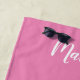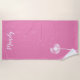 Esta toalla rosa de playa está decorada con tu nombre, un delicado diente diente de león blanco y semillas que soplan, lo que la convierte en el accesorio perfecto en verano.
