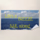 Disfruta de esta escena temática del océano con la frase, cita de Life's A Breeze Sail Along escrita en un texto amarillo soleado. El fondo tiene un océano azul bonito con olas de espuma blanca y un cielo azul bonito con grandes nubes blancas onduladas. Foto Original Cita© TamiraZDesigns.