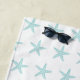 Esta toalla de playa, sencilla pero llamativa, tiene un bonito fondo turquesa con estampado de estrella y un espacio elegante para añadir tu nombre o un mensaje de tu elección.