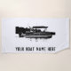 Esta toalla blanca de playa cuenta con un ilustracion negro de un pontón flotando sobre un lago. Utilice la plantilla de relleno para personalizar esta toalla con el nombre de su barco o el nombre del capitán de su pontón favorito. Esta toalla de playa es un gran regalo para los propietarios de botes pontones. Encuentre más regalos y artes para los propietarios de botes pontones en la tienda Ponton Boat Paradise Zazzle.