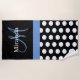 Moda y moda con divertidos puntos de polka blanco sobre un elegante fondo negro con una franja azul de flor de maíz. Siempre con estilo con puntos de polka. Un regalo perfecto o hazlo por ti mismo. Personalizar a acomodarte. Usa tu apellido o tu nombre o usa tu propio texto. Si necesitas ayuda para hacerlo más propio, por favor envíame un correo electrónico. designsbykatz@gmail.com