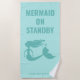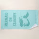 Toalla de playa de sirena azul acuática con un nombre personalizado. Toalla de playa personalizada con pequeño diseño de silueta de silueta de sirena y elegante tipografía de escritura de pincel. Añade tu propia cita graciosa, nombre real o letras de monograma. Idea única de regalo de cumpleaños para chicas, hija, esposa, mamá, abuela, amiga, prima, hermana, novia, etc. Accesorios divertidos al aire libre para playa, viaje o piscina. ilustracion submarino divertido con pelo ondulado, cola de pescado y color de fondo de personalizable. Regalos por ella. Sirena en espera.
