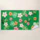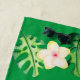 Siempre tendrás la impresión de estar en el trópico con toalla de playa de impresión tropical. Este diseño tiene hojas verdes y flores de colores en un fondo verde oscuro.