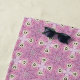 A set of purple-patterned towels is displayed. Top image shows bath towels on a rod, and the bottom image shows a washcloth with a corner folded.