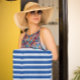 Toalla de playa clásica con rayas de cabaña en azul profundo ( #004095) y blanco . Personalízalo ahora con un nombre . También puede añadir un monograma /logo etc . Diseño de Alma Wad .
