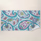 Modelo hermoso de Boteh Paisley del persa en toalla de playa adaptable con el monograma en forma redonda gris. Etiqueta a juego del equipaje de los productos, almohada, pegatina, caja del favor y más…