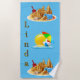 Una Toalla De Playa Azul Diseñada En Un Tema De La Playa Para Uno Mismo O Como Regalo. Puede personalizar