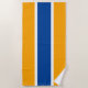 Este colorido diseño deportivo presenta una audaz franja central azul profundo realzada con rayas blancas contra un fondo amarillo dorado vibrante.