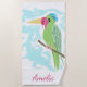Divertido loro con helado dibujando toalla de playa. Toalla de playa para un verano caliente en la playa. Se trata de un divertido dibujo de un loro y de un helado en el pico. Añade tu nombre.