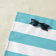 Una perfecta incorporación a sus bolsos de bienvenida boda, o un dulce regalo personalizado de luna de miel, esta toalla acuática náutica y de playa de rayas blancas muestra "dos menos peces en el mar" con letras de pincel blanco con dos peces besándose. Personaliza con los nombres de la pareja, la fecha de boda y la ubicación.