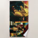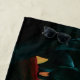 Reina egipcia con un dragón rojo en el hombro. La reina sostiene una órbita de un universo. Un león negro con alas está sobre una montaña con un esfinge detrás.