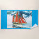 Esta acuarela se hizo en Islandia. Muestra uno de los clásicos barcos de pesca amañados con las tradicionales velas rojas. El barco se dirige a través de aguas heladas para llegar al mar abierto.