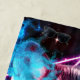 Este diseño de temática espacial presenta un lobo con humo azul y rosa vibrante que sale de sus ojos sobre un planeta con un espectáculo geométrico de luz de neón.