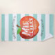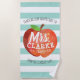 Una diversión y un verde alegre del seafoam rayaron la toalla de playa que ofrecía un ilustracion estilizado de la manzana. Dentro de esta manzana es el nombre de su profesor preferido en una fuente juguetona del estilo. Una gran manera de mostrar le agradece a un gran profesor.