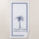 Añade tu propio toque especial a este diseño elegante y sencillo, con tu nombre o frase familiar y fecha establecida en texto azul y palmera de coco azul enmarcada en un borde azul.