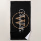 Toalla De Playa Elegante Monograma Negro y Dorado en Letra Cursiva