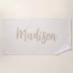 Crea tu propia toalla de playa personalizada con un nombre de guión elegante de color beige neutro.