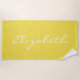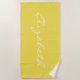 Esta toalla de playa personalizado incluye su nombre en una bonita escritura manuscrita escrita en un elegante fondo amarillo iluminado en verano. Gran idea de regalo.