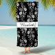 Elegante Y Personalizada Toalla De Playa Con Nombre Floral Blanco Y Negro.