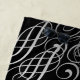 Elegante juego de Relieve metalizado gris plateado fino con aspecto de filigree efecto scrollwork script sobre negro. Añada una inicial a esta pieza de glamour inspirada en Hollywood Regency.