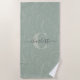Toalla de playa de nombre floral verde verde sabio personalizada
