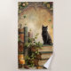 Add cozy magical vibes to anything with this Enchanted Black Cat Library Art design. A sleek black cat perches on a stack of old books, framed by climbing vines, autumn leaves, berries, and softly glowing candles against a warm antique backdrop. The scene feels like a quiet corner of an enchanted library—perfect for witchy, cottagecore, and book-lover aesthetics.