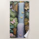This artwork portrays a magical jungle waterfall, cascading gently amidst a vibrant landscape of pastel-coloured jungle plants and flowers. A flurry of delicate butterflies flutters throughout, adding a whimsical touch to this serene and lush oasis.