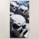 A dramatic landscape of layered skulls fading into the distance under cold blue light. Strong shadows and sharp contours create a haunting atmosphere filled with depth, repetition and raw visual impact.