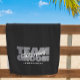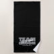Diseño de toalla de playa personalizada para los pajes del novio con "EQUIPO DEL NOVIO" en negrita gris claro sobre fondo negro sólido. Personalice el nombre del padrino en escritura blanca crujiente. El título o texto personalizado aparece debajo. ¡Todos los colores de este diseño son personalizables en la herramienta de diseño de Zazzle! Envíe un mensaje con preguntas o solicitudes de color personalizado.