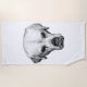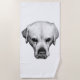 El retrato del Labrador, esparcido por un gran lienzo, se siente monumental. Su intensidad en escala de grises convierte una toalla simple en una declaración dramática, llevando fuerza y suavidad a cualquier escenario.