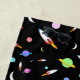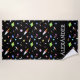 Una toalla decorada con cohetes, estrellas, lunas y planetas coloridos. Personalice con el nombre de su elección. Excelente para futuros astronautas.