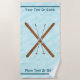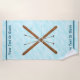 Los esquís cruzados de madera y los postes de esquí superpuestos sobre una imagen de fondo nevada. Hay dos lugares para que añadas tu propio texto.