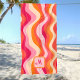 Toalla De Playa Estética retro Groovy rosa - Monogramada