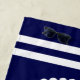 Estrella de brújula náutica rosa azul marino y toalla de playa blanca. Signo del noreste del sudoeste. Toalla de temática marítima personalizada con nombre o nombre del barco. Ideal para la playa, la piscina, el barco, etc.