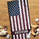 Muestra tu orgullo americano o dale un regalo especial con esta toalla de playa de bandera estadounidense en un desgastado diseño. Este diseño de toallas de playa de bandera estadounidense con estrellas y rayas en blanco y azul rojo es perfecto para el cuarto de julio de 2014, decoración de fiestas del Día de la Conmemoración, reuniones familiares, graduación militar o regalos de retiro y celebraciones patrióticas. Personalice esta toalla de playa de bandera americana con un nombre familiar. DERECHOS RESERVADOS © 2020 Judy Burrows, Black Dog Art - Todos los derechos reservados. Estrellas patrióticas personalizadas tira toalla de playa de bandera estadounidense