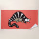 Toalla de playa de gatos cortos con un ilustracion vectorial de una madre felina esponjosa que protege su gatito presionándolo con su propio peso.