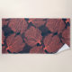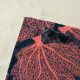 Vector pattern made of fan corals in living coral color on dark blue background.