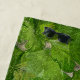 Fantasy artwork of big green leaves forming part of a lush tropical plant forest.