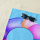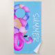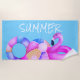 Toalla de playa fiesta de la piscina de verano. Un diseño de acuarela vibrante y divertido. Flamingo rosa, bola de playa y anillo de billar. Ideal para la piscina o la playa.