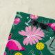 Fiesta de pickleball tropical super divertido con flamencos rosados, bebidas y follaje tropical sobre fondo verde oscuro