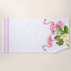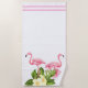 Esta toalla de playa se muestra en una impresión de flores y flamencos tropicales. Colores de la imagen de material blanco freepik.com