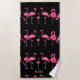 Flamingo flock Beach Towel Flamingo es un ave de enrejado alto con un plumaje rosa o escarlata y piernas y cuello largos. Tiene una pesada inclinación que se mantiene boca abajo en el agua para filtrar la alimentación de los pequeños organismos.