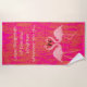 Toalla De Playa Flamingo Dance. Disfrute del elegante par de hermosos pájaros con un fondo rosa y coral caliente. ¡Estilo náutico, tropical y costero! Ideal para la piscina, la playa o el barco. Mantén la cita "Deja huellas de amor y bondad donde vayas..." o agrega tu propio toque a tu personalizar.