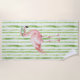 Toalla De Playa Flamingo rosa con gafas de sol Rayas verdes