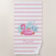 Toalla de playa tropical con flamingo rosa personalizado.