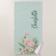 Toalla De Playa Flamingo rosa flores tropicales sage verde