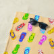 Esta hermosa toalla de playa tiene un adorable patrón de sandalias de chanclas con diferentes colores y motivos.