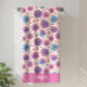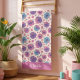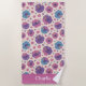 Este diseño de toalla de playa floral está completo con un patrón continuo de flores de hibisco rosadas y moradas sobre un fondo crema. Hay un espacio para agregar su nombre en la parte inferior de la toalla.