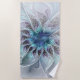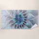 Toalla De Playa Flor Fractal Moderna Con Azul